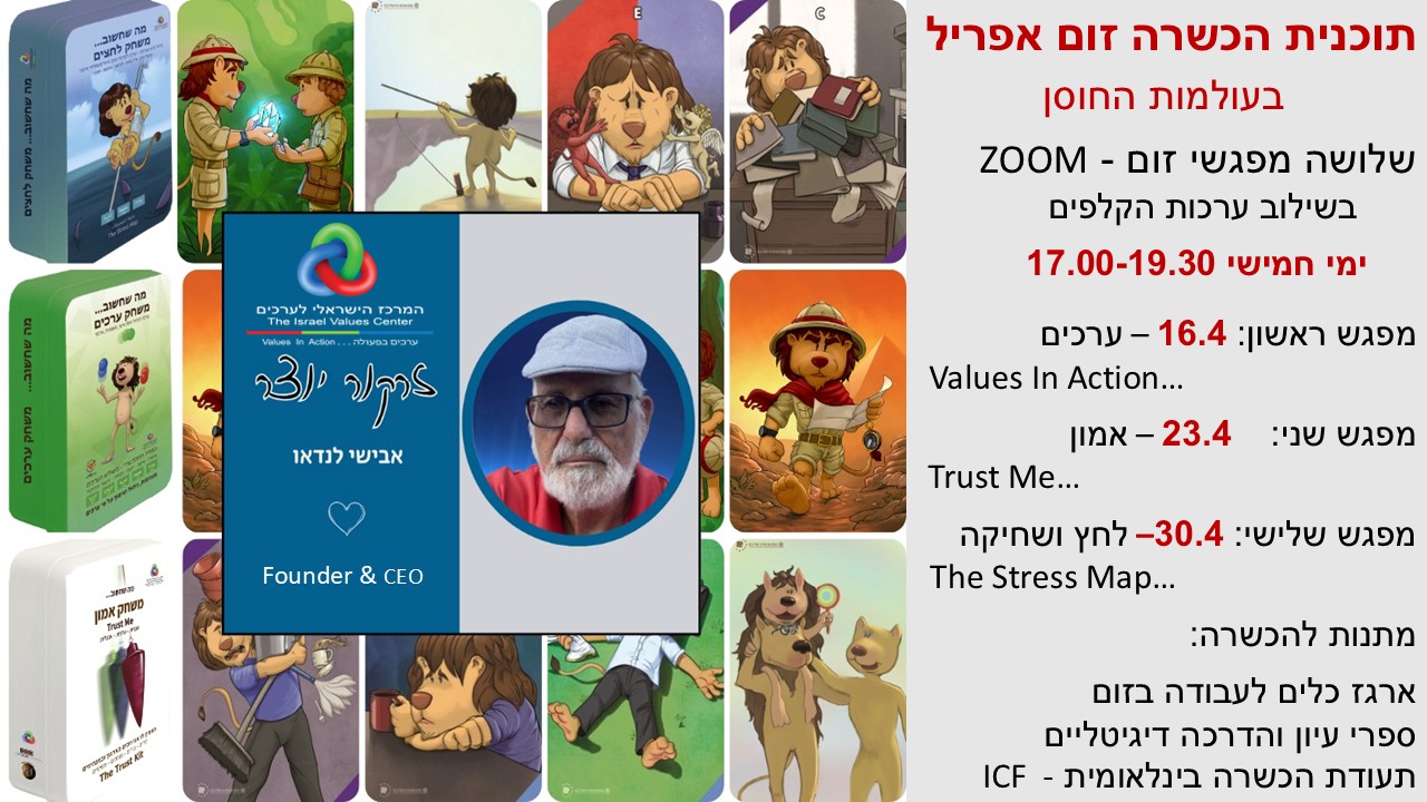 הכשרה בינלאומית זום בעולמות החוסן בשלושה מפגשי זום חווייתיים בעזרת קלפי הערכים, האמון וקלפי הלחץ והשחיקה